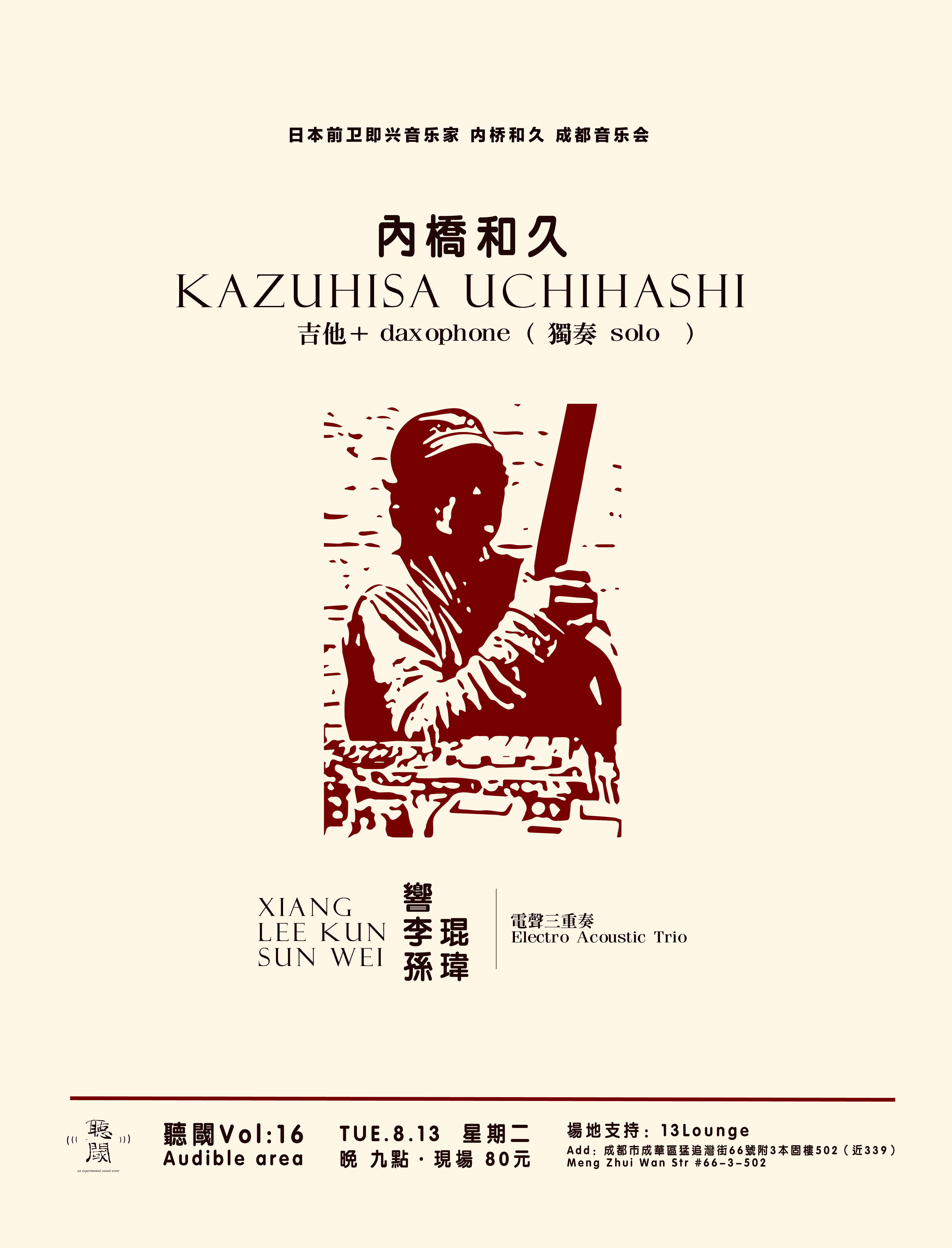 1959年出生于日本大阪的内桥和久(Kazuhisa Uchihashi),是日本的摇滚、爵士及即兴音乐人,也是日本唯一会演奏Daxophone的人。这个乐器是来自吉他手/发明家Hans Reichel(已故)的作品,是内桥和久的合作音乐人之一。之后Kazuhisa Uchihashi成立了自己的三重奏乐团Altered States,至今已经活跃了30多年。最引人瞩目的是曾在90年代加入大友良英(Otomo Yoshihide)最为著名的摇滚乐团Ground Zero,除此之外内桥和久还曾与吉田达也共同合作创作过。