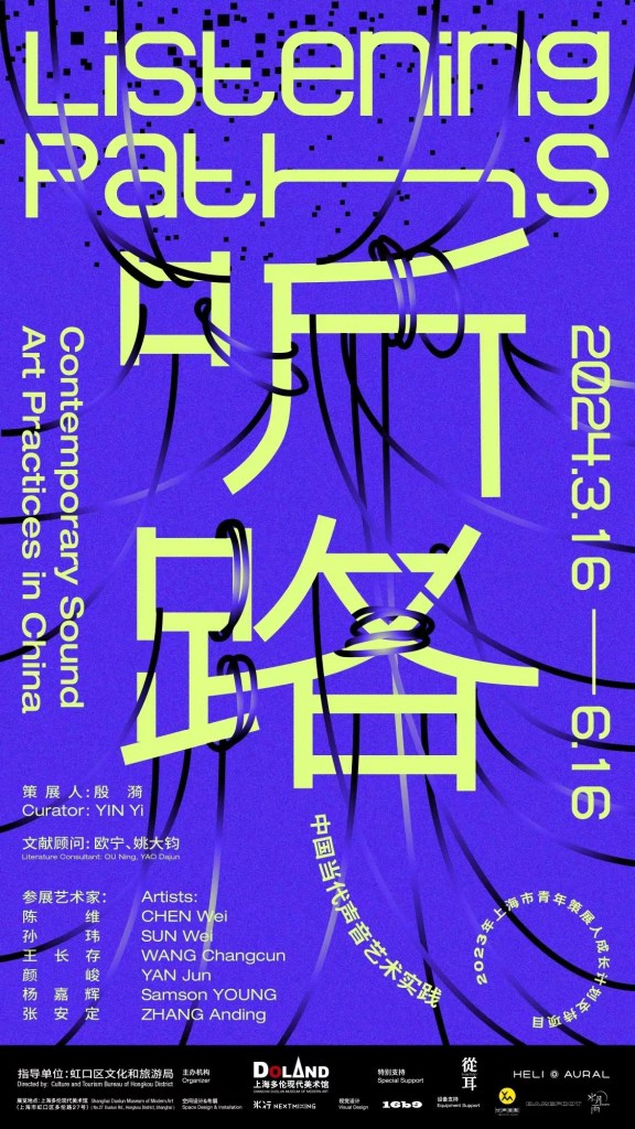 “听路:中国当代声音艺术实践”(以下简称“听路”)由上海多伦现代美术馆主办,殷漪担任策展人,参展艺术家为陈维、孙玮、王长存、颜峻、杨嘉辉、张安定。展览以新世纪的第一个十年——2010年为时间上的浮标,以当代艺术视野中的展览为线索,通过文献与档案来回顾声音艺术在中国的在地过程,观察中国声音艺术家的创作演变,思考声音艺术在当下的艺术生态与未来的可能。